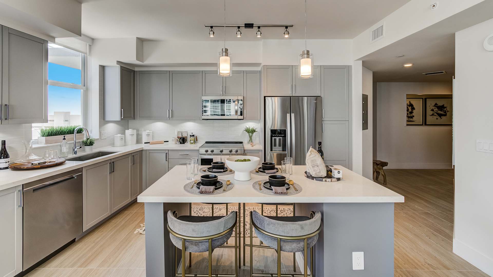 - Balcony with Riverwalk and New River views (views vary by unit location)